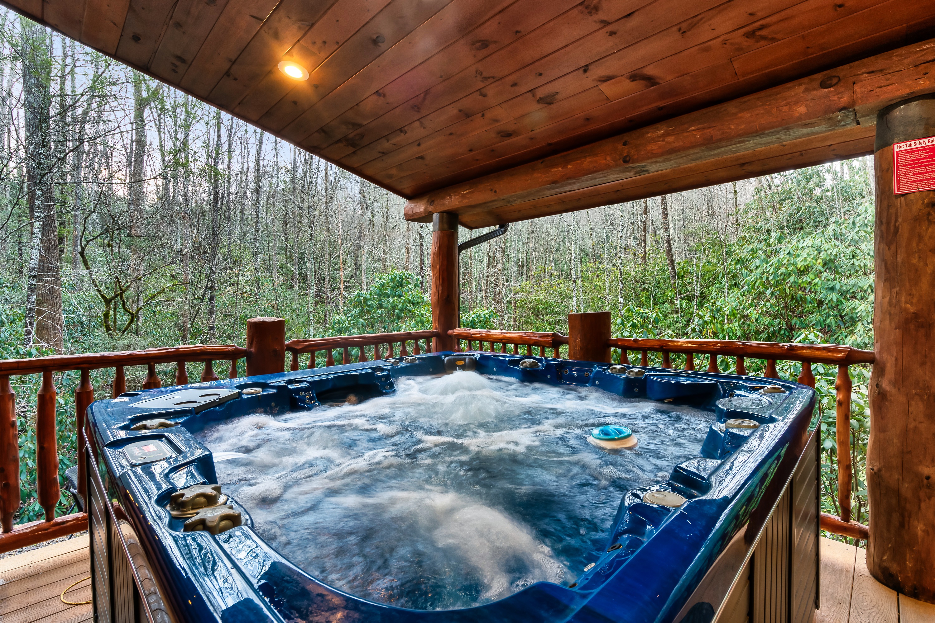 • Private hot tub set in a peaceful, wooded setting